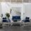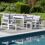 Salon de jardin BARI en textilène gris 8 places - aluminium blanc